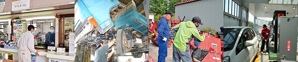 資材課、生活課、給油所、整備課などがあります。窓口業務が中心で、農業に必要な肥料・農薬・農業生産資材、生活資材・生鮮食品の販売、コンビニ運営、ガソリンスタンド運営、自動車・農業機械の販売などを行います。